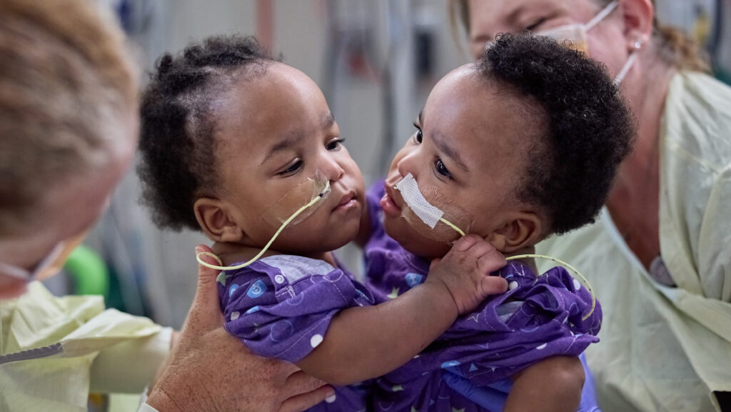 Conjoined twins Amari and Javar were born weighing 3 pounds combined. They stayed in CHOP’s N/IICU as they grew and gained strength for surgery. When they were almost 11 months old, a team of more than two dozen specialists performed an eight-hour procedure to separate them. Now the twins are happy, healthy and learning how to hit milestones in two individual bodies. They are CHOP’s 32nd set of successfully separated conjoined twins.